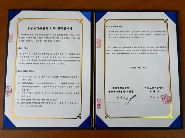 2026³â 2¿ù 26ÀÏ , ¿ì¸®³ëÀÎÀü¹®º´¿øÀº ÀüºÏ´ëÇб³º´¿ø °ø¿ëÀ±¸®À§¿øÈ¸°ú ¿¬¸íÀÇ·á°áÁ¤Á¦µµ¿î¿µÀ»