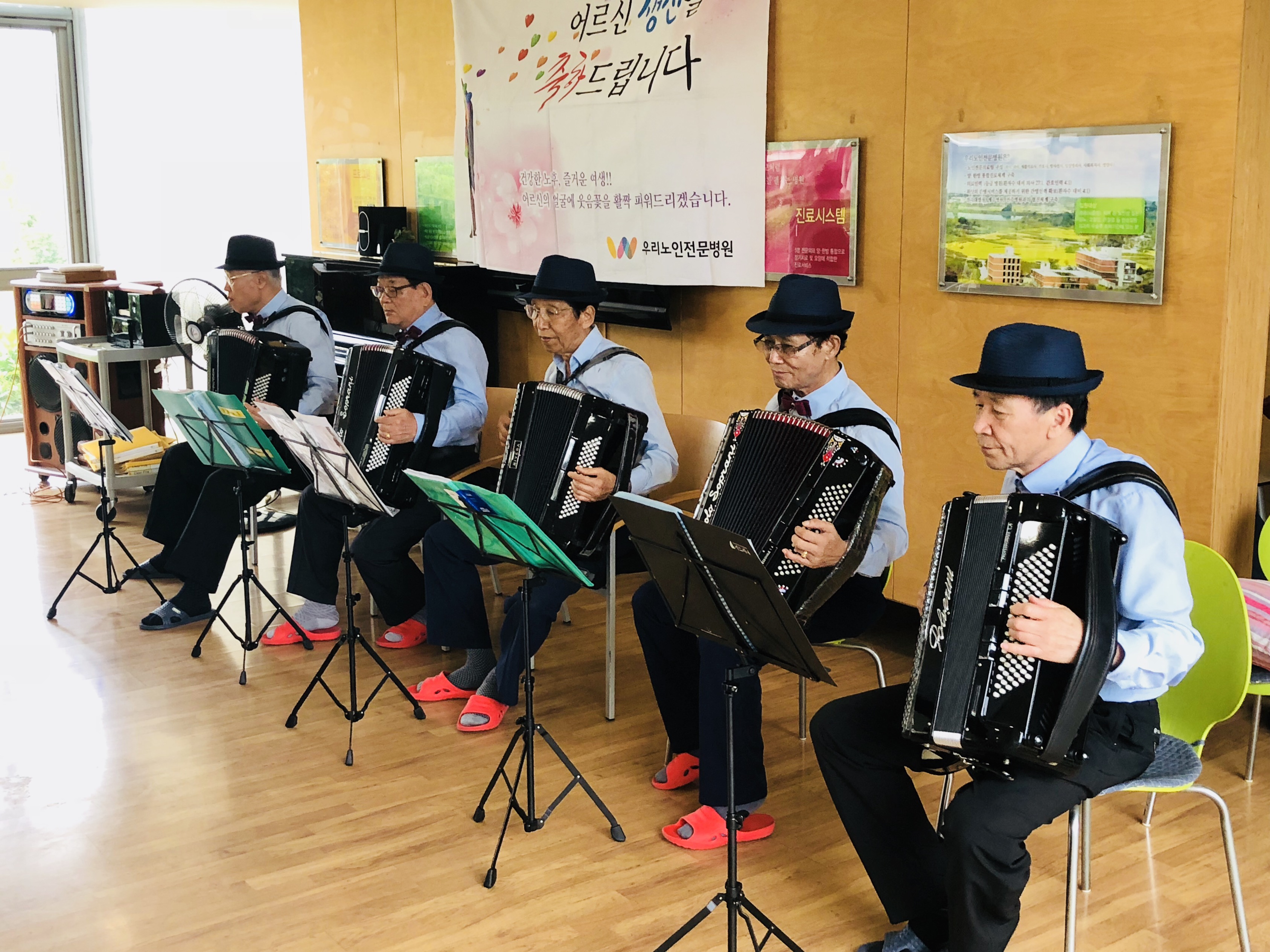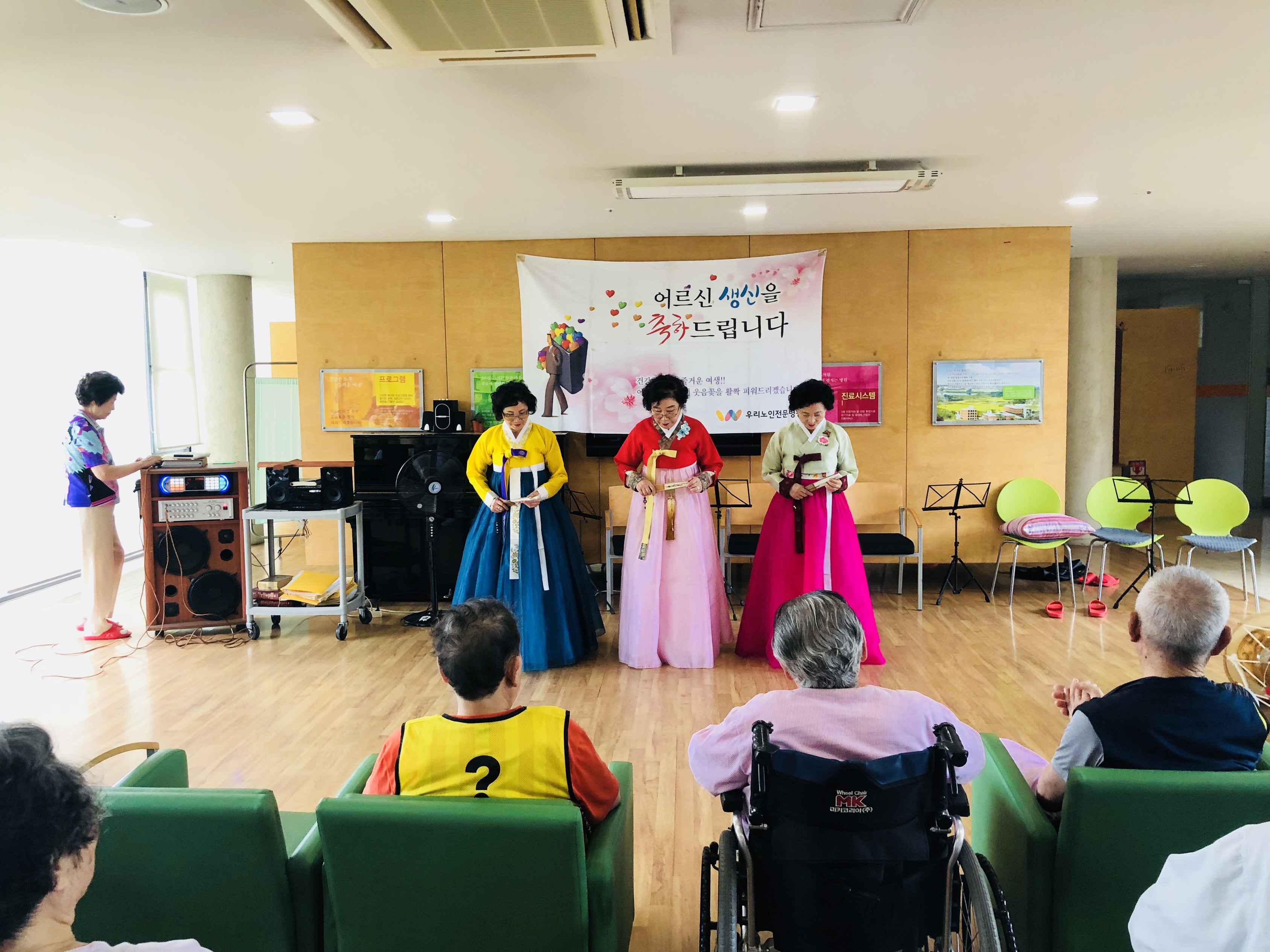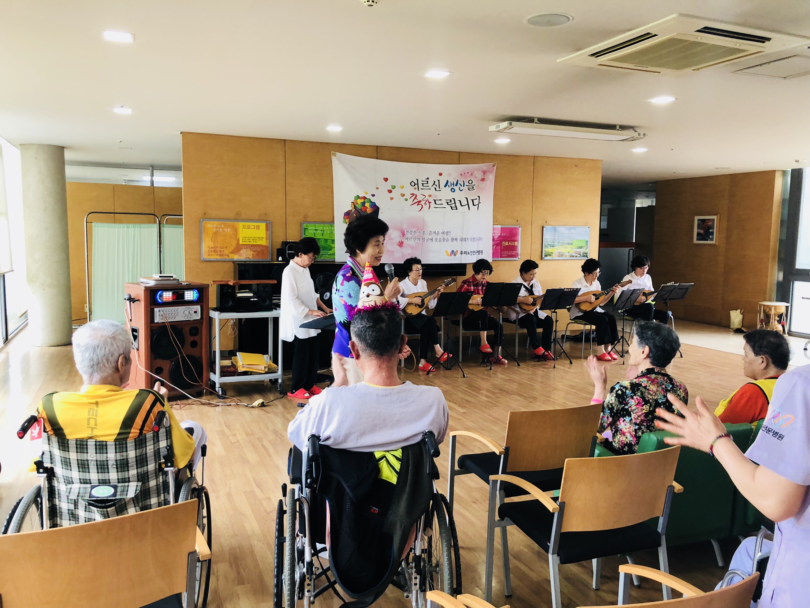 1. ³»¿ë : 6¿ù »ý¿ùÀÜÄ¡2. ÀϽà : 2018³â 6¿ù 26ÀÏ È¿äÀÏ3. Àå¼Ò : ¿ì¸®³ëÀÎÀü¹®º´¿ø 1Ãþ Ä«ÆäÅ׸®¾Æ4. Àοø : 6¿ù »ý½Å ¾î¸£½Å 12¸í, º´¿ø ȯ¿ìºÐµé 10¸í, ¿Ï»ê³ëÀκ¹Áö°ü °ø¿¬´Ü 30¸í¿©¸§ÀÌ ´Ù°¡¿Ô´Ù´Â °É ¾Ë¸®µíÀÌ ÇÏ´Ã ³ôÀÌ ¶°¼ ¿½ÉÈ÷ ºûÀ» ³»°í žçÀ» ǰÀº 6¿ùÀÔ´Ï´Ù. ±× 6¿ù¿¡ »ý½ÅÀ» ¸ÂÀ¸½Å ¾î¸£½ÅµéÀ» ÃàÇÏÇϱâ À§Çؼ »ý½ÅÀÜÄ¡¸¦ ÁøÇàÇÏ¿´½À´Ï´Ù. 6¿ù¿¡´Â ¿Ï»ê³ëÀκ¹Áö°ü¿¡¼ ¿ÍÁ̴ּµ¥¿ä. ³Ê¹«³ª °¨»çÇϰԵµ 30¿©¸íÀÇ °ø¿¬´ÜºÐµéÀÌ ¿ÍÁּż, ÈǶó´í½º, ¹Î¿ä, Çϸð´ÏÄ«¿¬ÁÖ, ¸¸µ¹¸°¿¬ÁÖ, ¾ÆÄÚµð¾ð¿¬ÁÖ·Î ¾î¸£½ÅµéÀÇ »ý½ÅÀ» ÃàÇÏÇØ Áּ̽À´Ï´Ù. ³Ê¹«³ª ´Ùä·Î¿ü´ø °ø¿¬ ½Ã°£¸¸Å ¾î¸£½ÅµéÀÇ Ç¥Á¤µµ ÁÁÀ¸¼Ì°í, ¸¹ÀÌ Áñ±â´Â ½Ã°£À» °¡Áö¼Ì½À´Ï´Ù. ¾î¸£½ÅµéÀÇ Ç¥Á¤ÀÌ Ç×»ó ¹à°Ô »ýȰÇÏ½Ç ¼ö ÀÖµµ·Ï ³ë·ÂÇÏ´Â ¿ì¸®³ëÀÎÀü¹®º´¿øÀÌ µÇµµ·Ï ÇϰڽÀ´Ï´Ù.