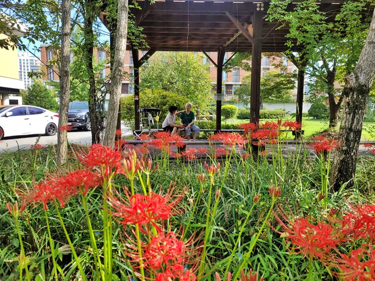 »êÃ¥Áß¿¡ ¸¸³ª´Â °í¿î ºû±ò¿¡ ²ÉµéÀÌ È¯ÇÑ ¿ôÀ½À¸·Î ¸Â¾Æ ÁÖ´Ï ½É½ÉÇÏÁö ¾Ê°í ¸¶À½µµ µû¶æÇÑ ±æÀÌ µË´Ï´Ù.