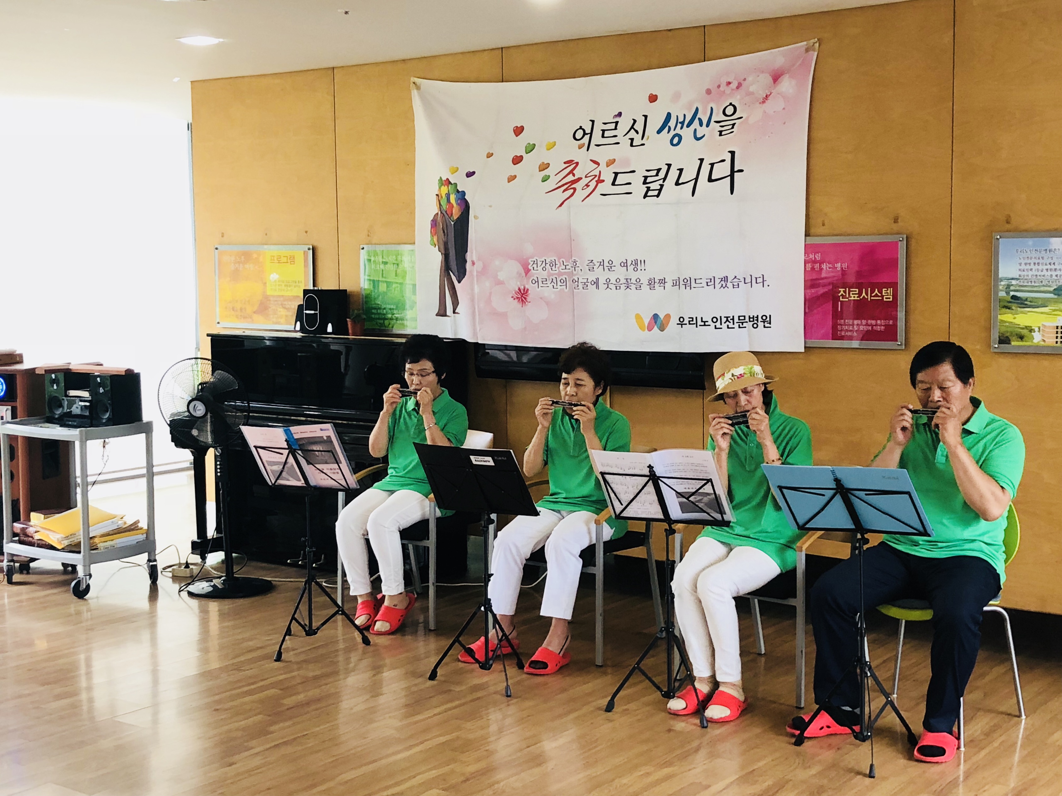 1. ³»¿ë : 6¿ù »ý¿ùÀÜÄ¡2. ÀϽà : 2018³â 6¿ù 26ÀÏ È¿äÀÏ3. Àå¼Ò : ¿ì¸®³ëÀÎÀü¹®º´¿ø 1Ãþ Ä«ÆäÅ׸®¾Æ4. Àοø : 6¿ù »ý½Å ¾î¸£½Å 12¸í, º´¿ø ȯ¿ìºÐµé 10¸í, ¿Ï»ê³ëÀκ¹Áö°ü °ø¿¬´Ü 30¸í¿©¸§ÀÌ ´Ù°¡¿Ô´Ù´Â °É ¾Ë¸®µíÀÌ ÇÏ´Ã ³ôÀÌ ¶°¼ ¿½ÉÈ÷ ºûÀ» ³»°í žçÀ» ǰÀº 6¿ùÀÔ´Ï´Ù. ±× 6¿ù¿¡ »ý½ÅÀ» ¸ÂÀ¸½Å ¾î¸£½ÅµéÀ» ÃàÇÏÇϱâ À§Çؼ »ý½ÅÀÜÄ¡¸¦ ÁøÇàÇÏ¿´½À´Ï´Ù. 6¿ù¿¡´Â ¿Ï»ê³ëÀκ¹Áö°ü¿¡¼ ¿ÍÁ̴ּµ¥¿ä. ³Ê¹«³ª °¨»çÇϰԵµ 30¿©¸íÀÇ °ø¿¬´ÜºÐµéÀÌ ¿ÍÁּż, ÈǶó´í½º, ¹Î¿ä, Çϸð´ÏÄ«¿¬ÁÖ, ¸¸µ¹¸°¿¬ÁÖ, ¾ÆÄÚµð¾ð¿¬ÁÖ·Î ¾î¸£½ÅµéÀÇ »ý½ÅÀ» ÃàÇÏÇØ Áּ̽À´Ï´Ù. ³Ê¹«³ª ´Ùä·Î¿ü´ø °ø¿¬ ½Ã°£¸¸Å ¾î¸£½ÅµéÀÇ Ç¥Á¤µµ ÁÁÀ¸¼Ì°í, ¸¹ÀÌ Áñ±â´Â ½Ã°£À» °¡Áö¼Ì½À´Ï´Ù. ¾î¸£½ÅµéÀÇ Ç¥Á¤ÀÌ Ç×»ó ¹à°Ô »ýȰÇÏ½Ç ¼ö ÀÖµµ·Ï ³ë·ÂÇÏ´Â ¿ì¸®³ëÀÎÀü¹®º´¿øÀÌ µÇµµ·Ï ÇϰڽÀ´Ï´Ù.
