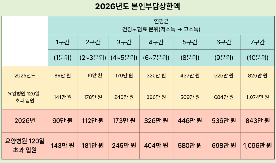 2026³â º»Àκδã»óÇÑ¾× ÃÖ°í»óÇѾ×ÀÌ 843¸¸ ¿ø, ¿ä¾çº´¿ø 120ÀÏ Ãʰú ÀÔ¿ø½Ã 1,096¸¸¿øÀ¸·Î Á¤ÇØÁ³´Ù.
