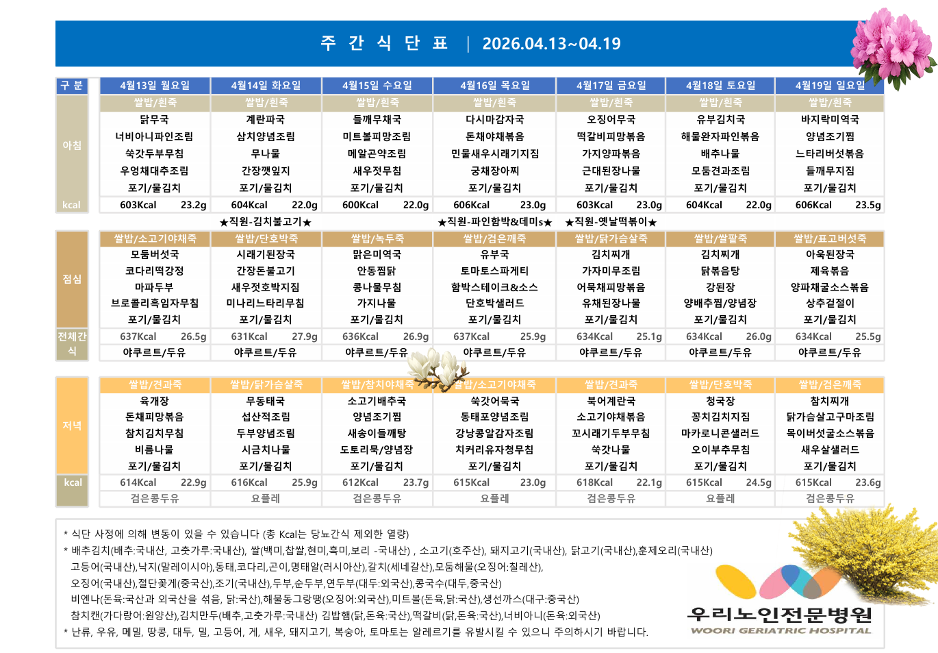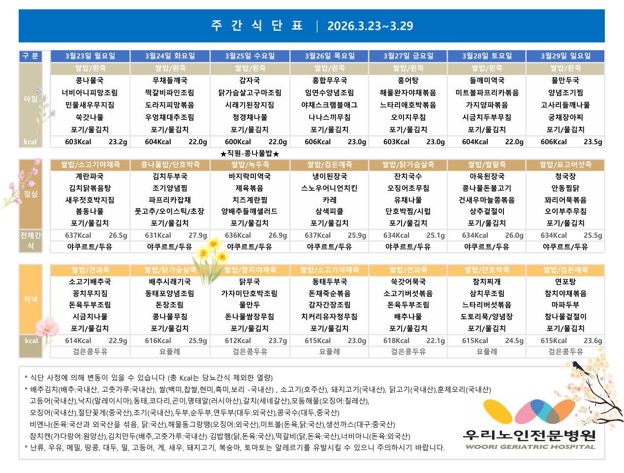 ¹é¼¼½Ä´Ü 03¿ù 1ÁÖ ½Ä´ÜÇ¥ÀÔ´Ï´Ù.