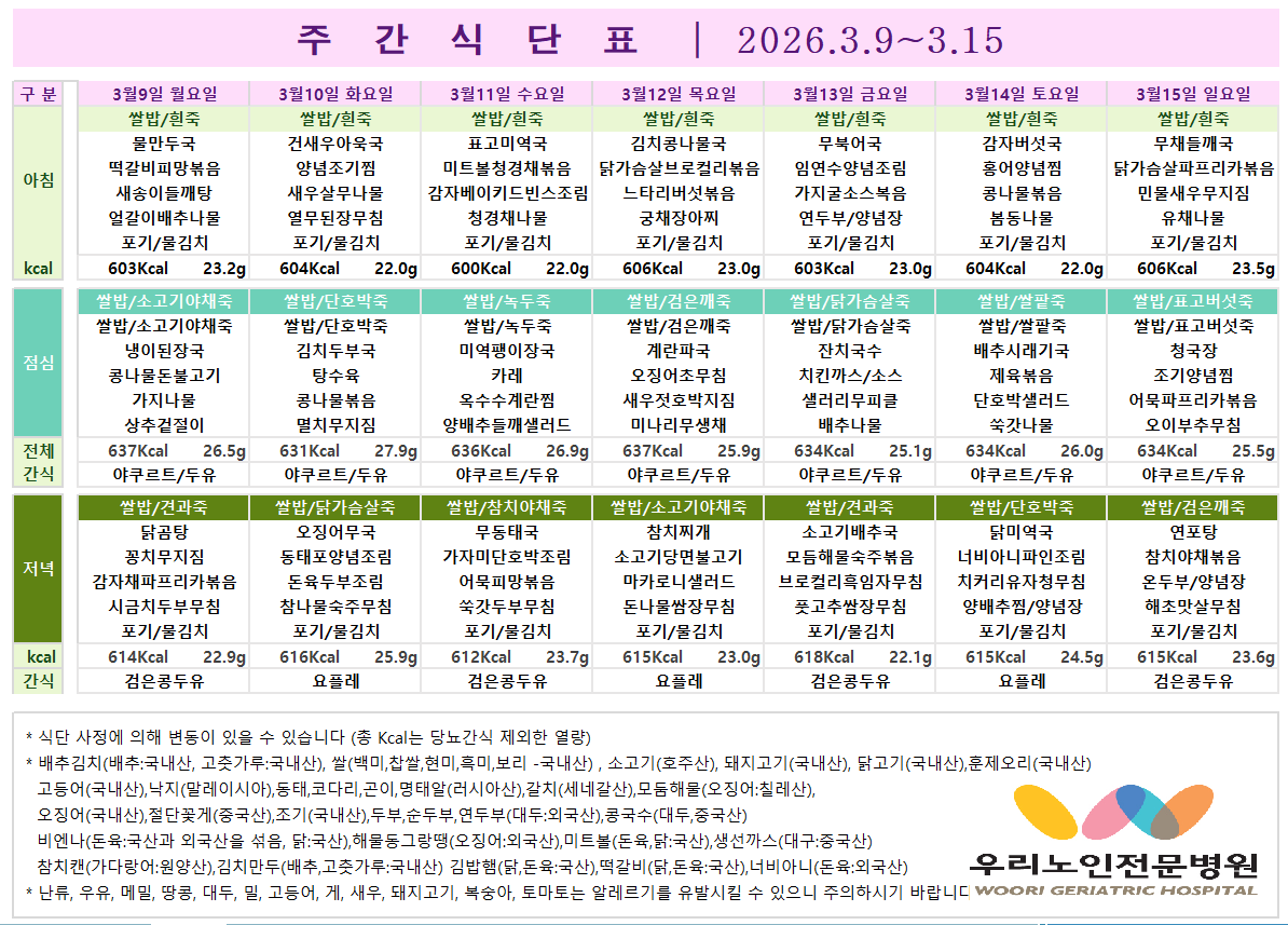 ¹é¼¼½Ä´Ü 03¿ù 1ÁÖ ½Ä´ÜÇ¥ÀÔ´Ï´Ù.